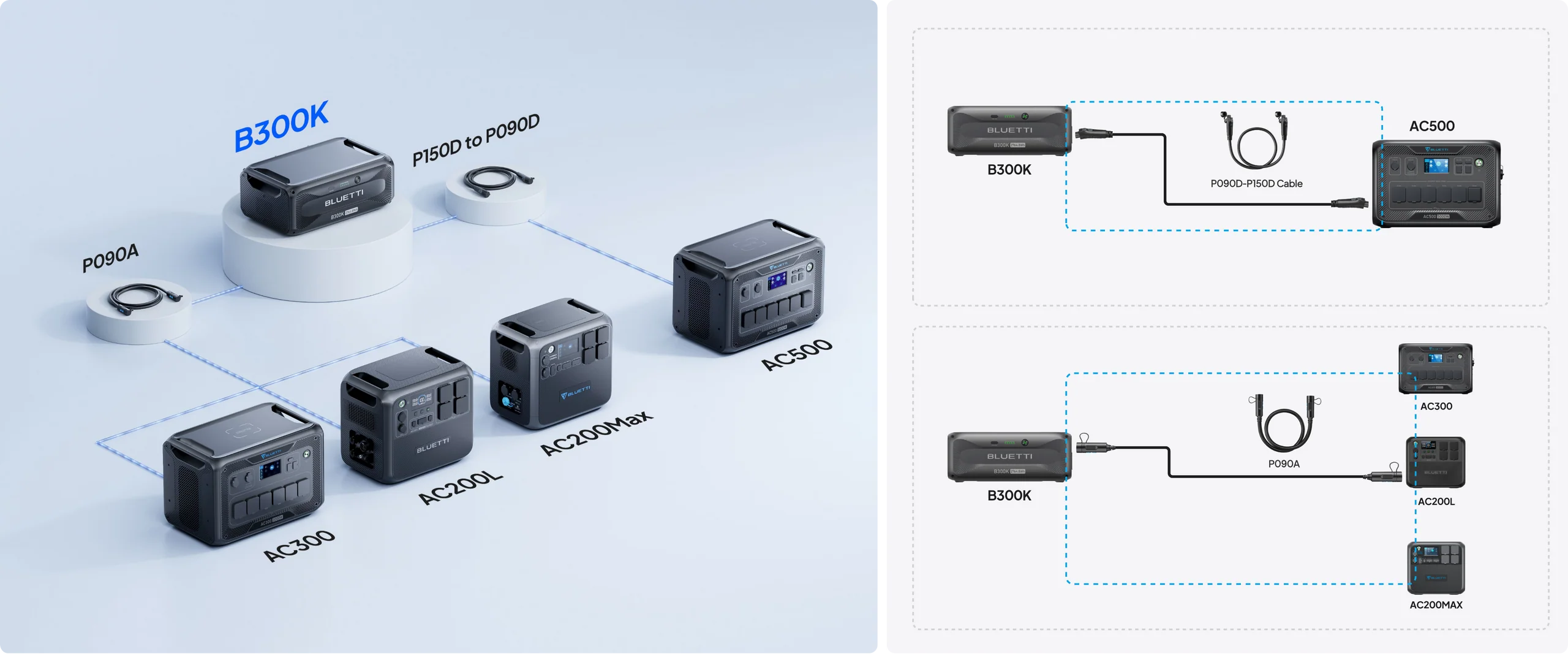 B300K se integrează perfect cu centralele AC200L, AC200MAX, AC300 și AC500*, oferindu-vă flexibilitatea de a vă scala configurația energetică pe măsură ce nevoile dvs. cresc. Indiferent dacă vă pregătiți pentru mai multă putere acasă sau vă pregătiți pentru următoarea aventură, B300K vă acoperă.